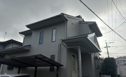 今回は細かいクラックなどを消したり、色んな事を考慮して微弾性塗料で下塗りしました。